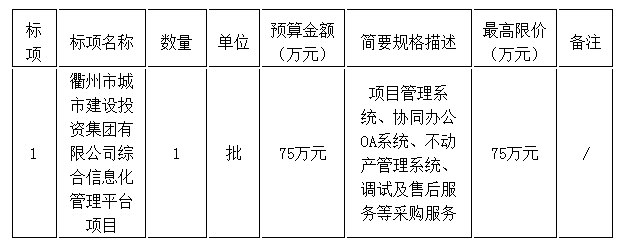 衢州市城市建設(shè)投資集團有限公司綜合信息化管理平臺項目競爭性磋商公告