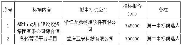 衢州市城市建設(shè)投資集團(tuán)有限公司綜合信息化管理平臺項目的中標(biāo)結(jié)果公告