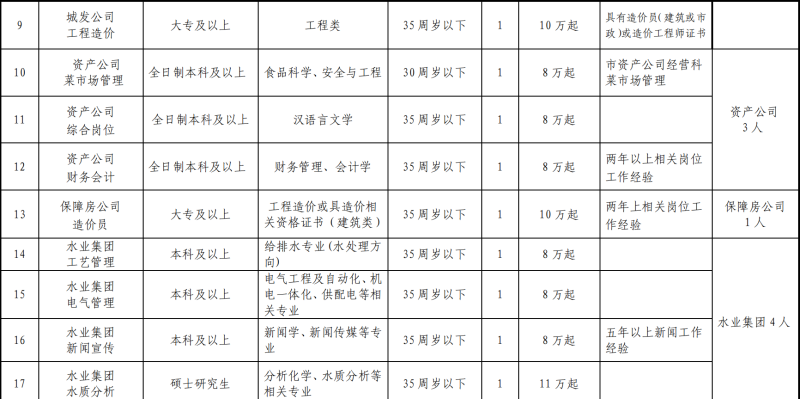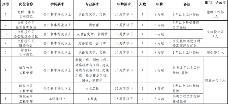 招聘計(jì)劃:辦公室文書(shū)、財(cái)務(wù)會(huì)計(jì)、工程造價(jià)、工程管理等崗位,共招聘20人