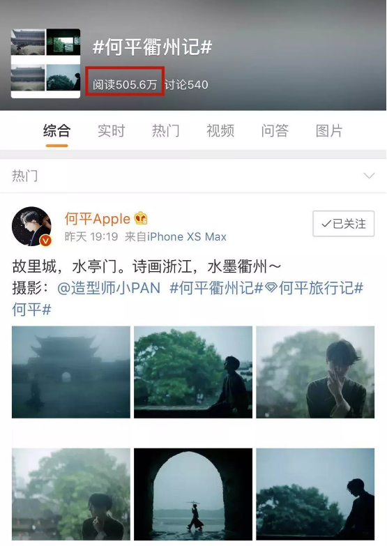 這是昨晚7時17分,衢籍跨界設計師、藝術(shù)插畫師何平在新浪微博開設的話題#何平衢州記#,其中第一條微博(鏈接:https://m.weibo.cn/status/4385338128809500),何平就放了9張他在網(wǎng)紅景區(qū)水亭門拍攝的大片。