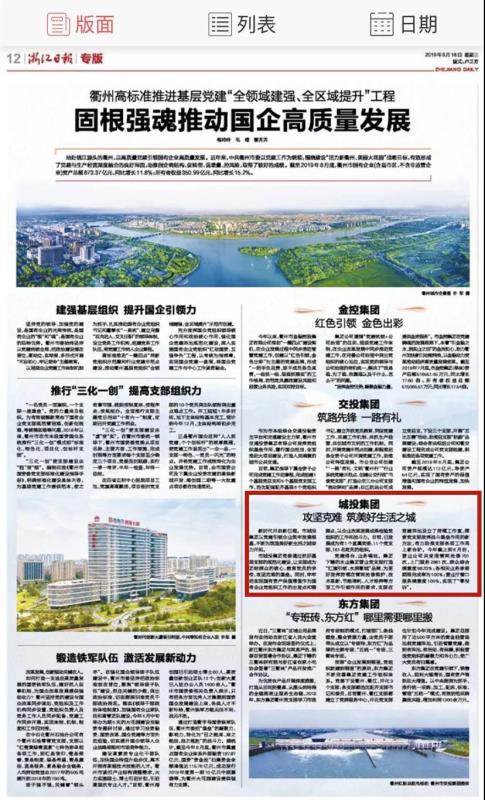9月18日,浙江日?qǐng)?bào)12版專版刊登了題為《衢州高標(biāo)準(zhǔn)推進(jìn)基層黨建“全領(lǐng)域建強(qiáng)、全區(qū)域提升”工程 固根強(qiáng)魂推動(dòng)國(guó)企高質(zhì)量發(fā)展》一文,點(diǎn)贊衢州以高質(zhì)量黨建引領(lǐng)國(guó)有企業(yè)高質(zhì)量發(fā)展。其中,還報(bào)道了城投集團(tuán)在黨建引領(lǐng)下,企業(yè)建設(shè)不斷走向“高質(zhì)量”。