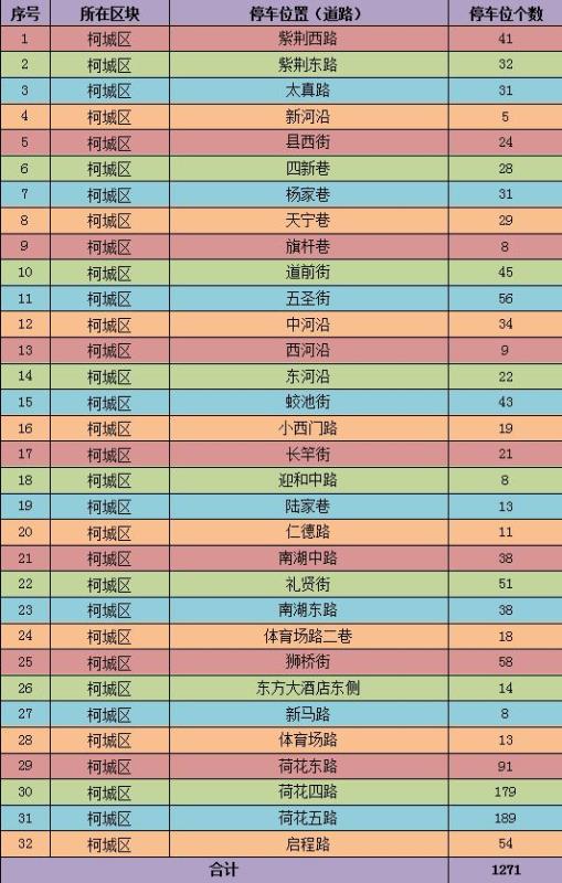 免費(fèi)開放的停車區(qū)域?yàn)槲夜竟茌牭氖召M(fèi)公共停車泊位6113個(gè)。其中收費(fèi)道路32條,停車泊位1271個(gè);公共停車場(chǎng)24個(gè),停車泊位4842個(gè)。