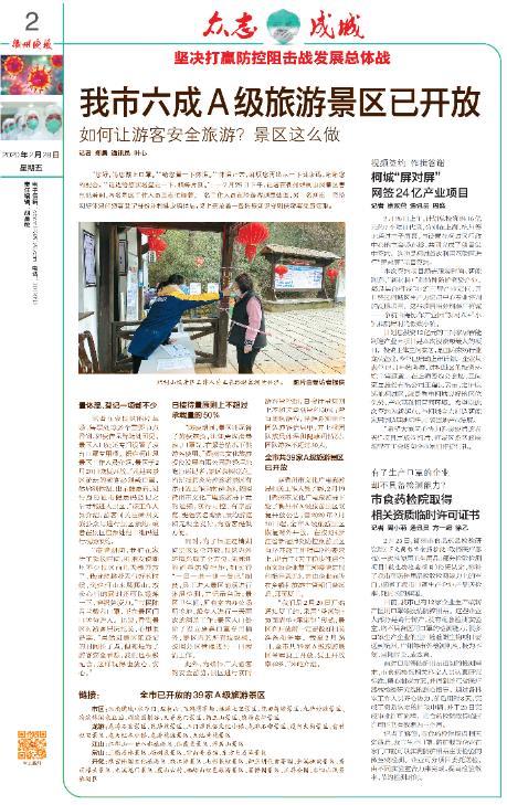 2月28日,衢州晚報第02版報道了爛柯山景區(qū)復工情況。