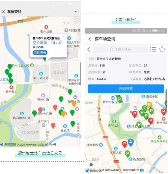 據(jù)悉,該項目將通過停車場聯(lián)網(wǎng)、停車位信息實時共享等功能,實現(xiàn)“大市區(qū)”智慧停車“一張網(wǎng)”。這樣既能提升停車空間利用率,又能方便市民群眾出行、提升停車服務。6月起,車主朋友們出行尋找停車位時,只需關注“衢州智慧停車”微信公眾號或交警“e衢行”(如下圖所示),就可以輕松找到目的地附近的公共收費停車位及機關事業(yè)單位免費共享停車場。