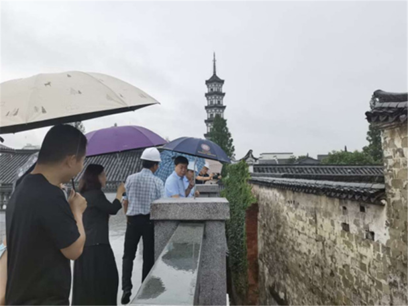 在水亭門歷史文化街區(qū),檢查組對在建項(xiàng)目、裝修商鋪以及江水上漲后的水亭門外廣場親水平臺進(jìn)行了逐一檢查。保證項(xiàng)目施工安全,確保裝修臨時(shí)用電雨季安全,加強(qiáng)安保巡邏。